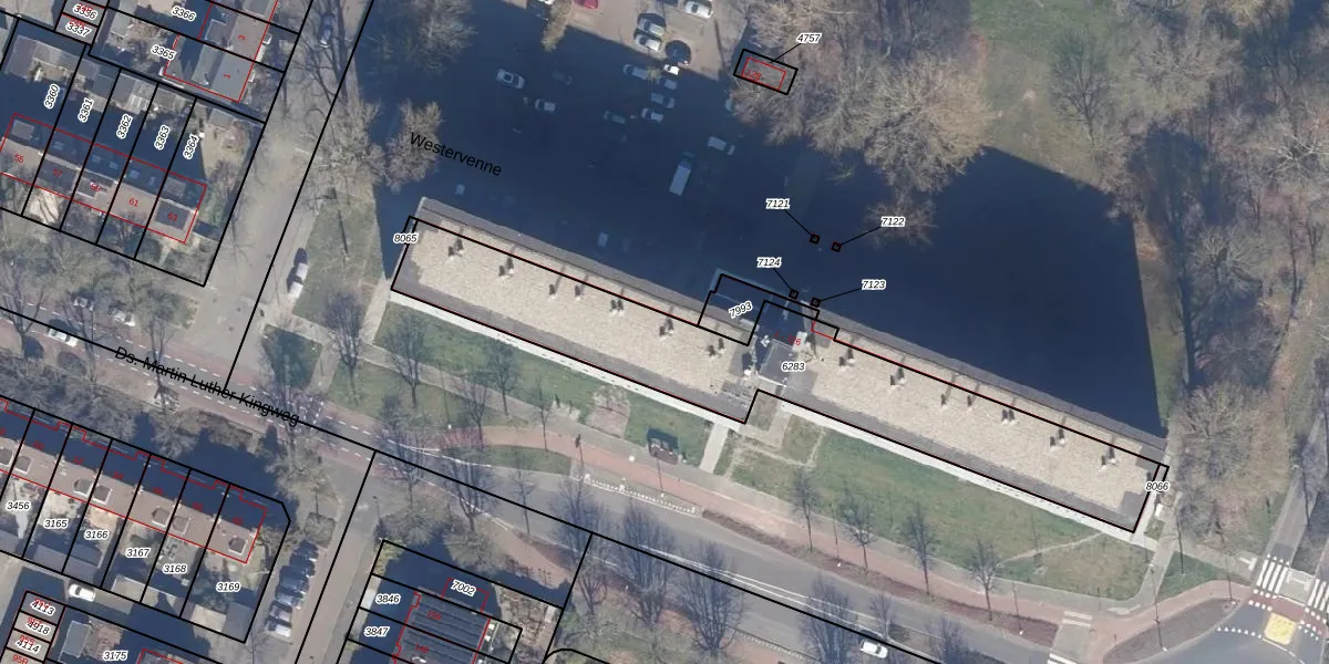 Het perceel waarop Westervenne 83 staat heeft een oppervlakte van 1355 m². Dit is een zeer groot perceel. De perceeloppervlakte wordt geregistreerd door het Kadaster. Gedetailleerde informatie over de maten van dit perceel kunt u vinden in het rapport Kadastrale kaart met maatvoering van Westervenne 83.