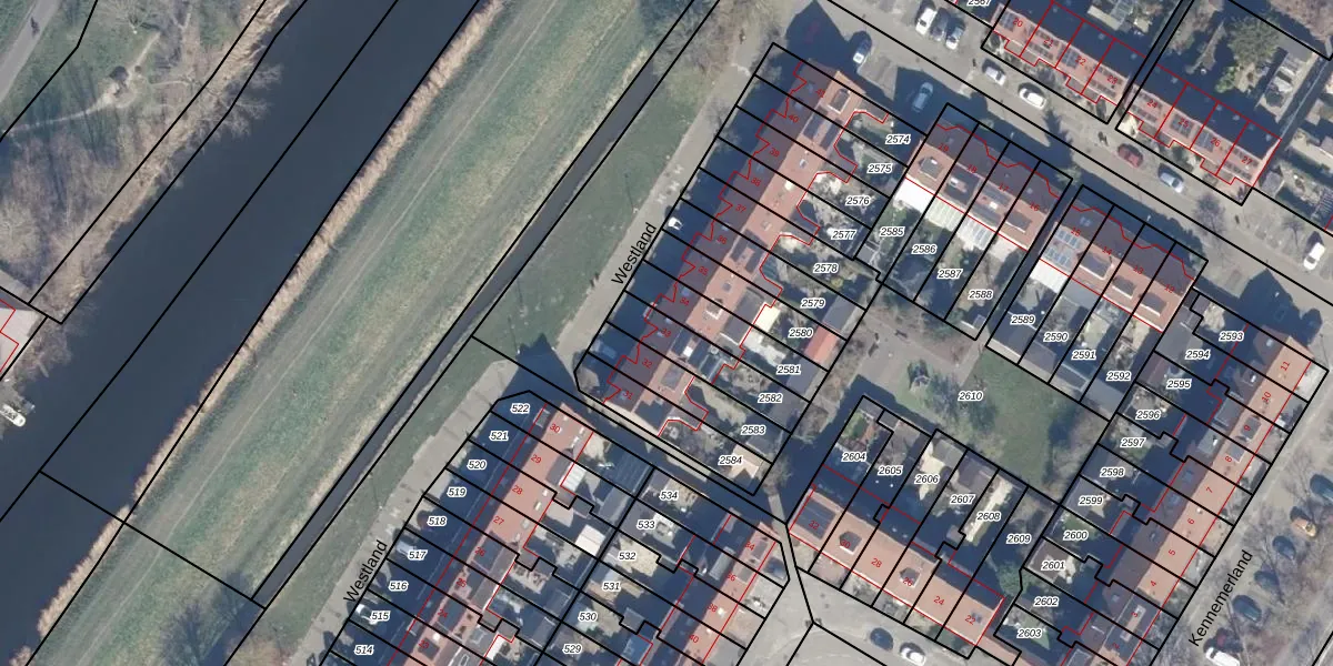 Het perceel waarop Westland 33 staat heeft een oppervlakte van 177 m². Dit is een middelgroot perceel. De perceeloppervlakte wordt geregistreerd door het Kadaster. Gedetailleerde informatie over de maten van dit perceel kunt u vinden in het rapport Kadastrale kaart met maatvoering van Westland 33.