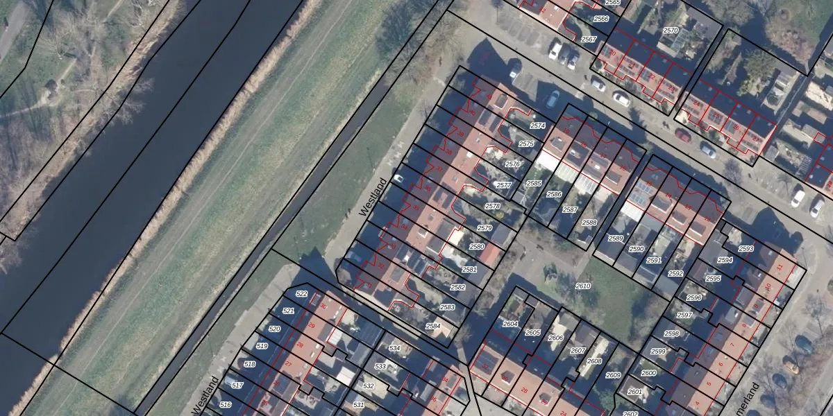 Het perceel waarop Westland 35 staat heeft een oppervlakte van 176 m². Dit is een middelgroot perceel. De perceeloppervlakte wordt geregistreerd door het Kadaster. Gedetailleerde informatie over de maten van dit perceel kunt u vinden in het rapport Kadastrale kaart met maatvoering van Westland 35.
