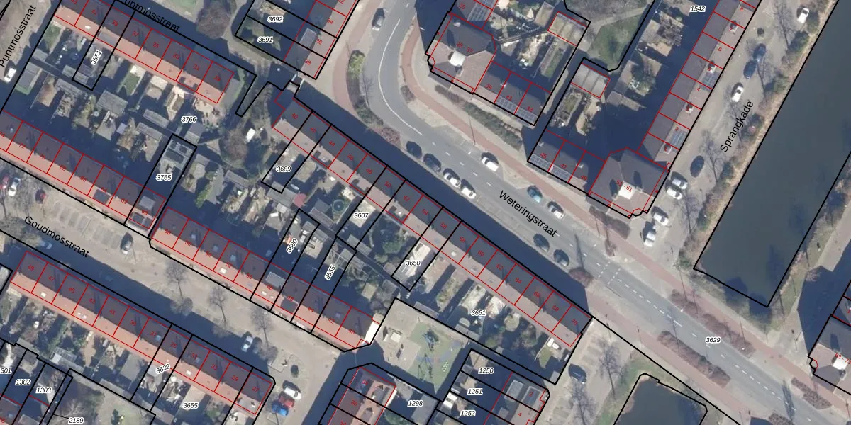 Weteringstraat 54 is gelegen op kadastraal perceel PMR00G3651. Deze kadastrale aanduiding is uniek en wordt gebruikt door het Kadaster om eigendomsrechten en andere zakelijke rechten vast te leggen. Het perceel maakt onderdeel uit van de kadastrale gemeente Purmerend.