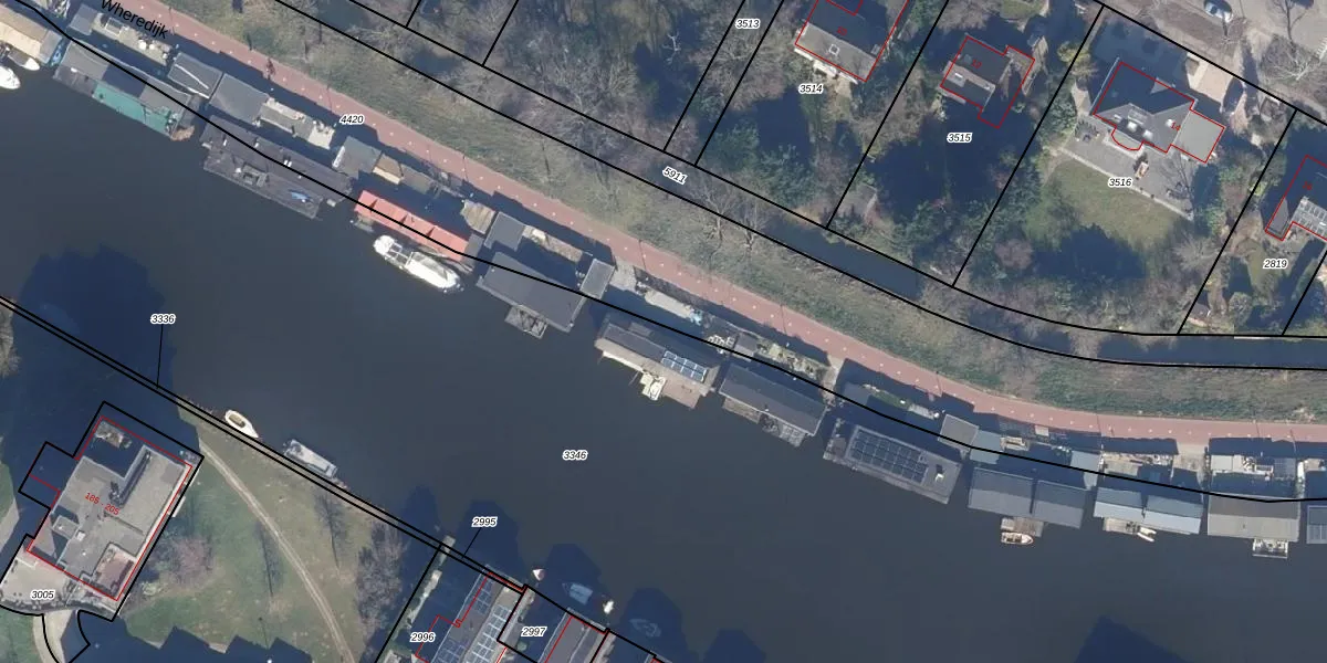 Het perceel waarop Wheredijk 32 staat heeft een oppervlakte van 4,6 ha. Dit is een zeer groot perceel. De perceeloppervlakte wordt geregistreerd door het Kadaster. Gedetailleerde informatie over de maten van dit perceel kunt u vinden in het rapport Kadastrale kaart met maatvoering van Wheredijk 32.