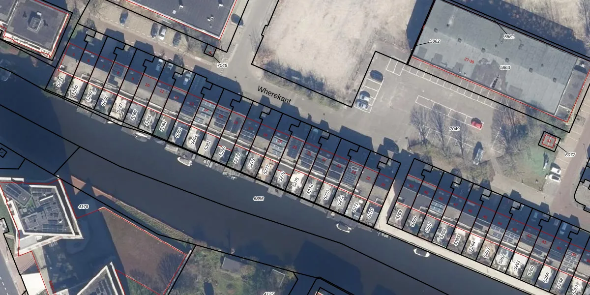 Gebruik de zoekbalk of klik op een perceel voor informatie over de adressen binnen dit perceel.