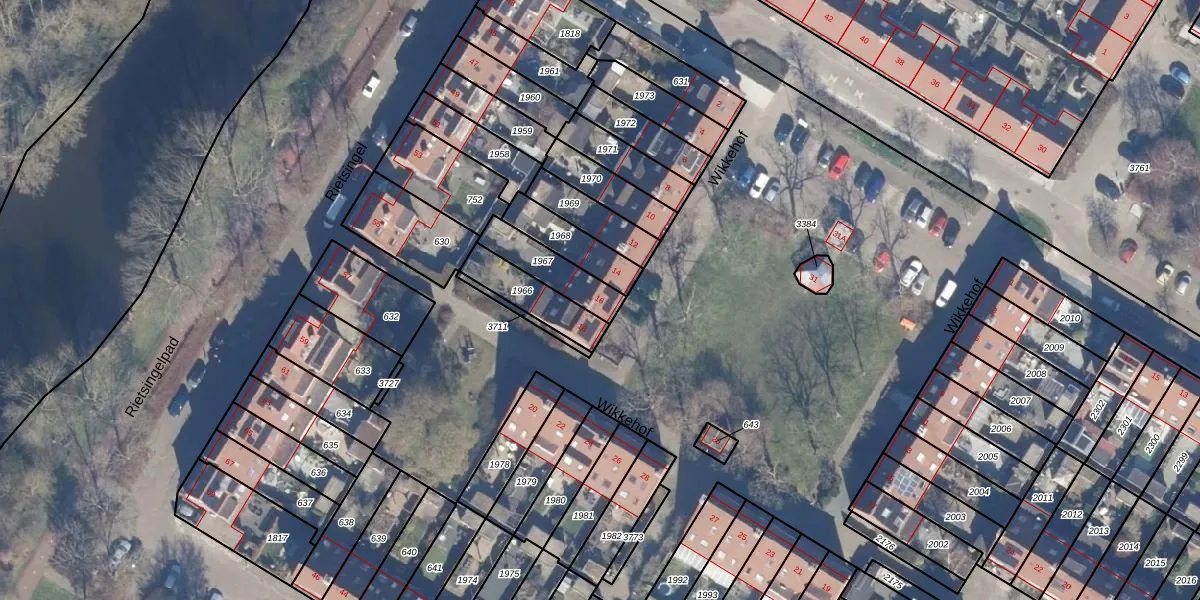 Gebruik de zoekbalk of klik op een perceel voor informatie over de adressen binnen dit perceel.