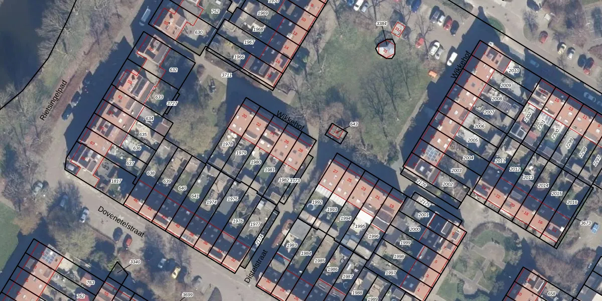 Gebruik de zoekbalk of klik op een perceel voor informatie over de adressen binnen dit perceel.
