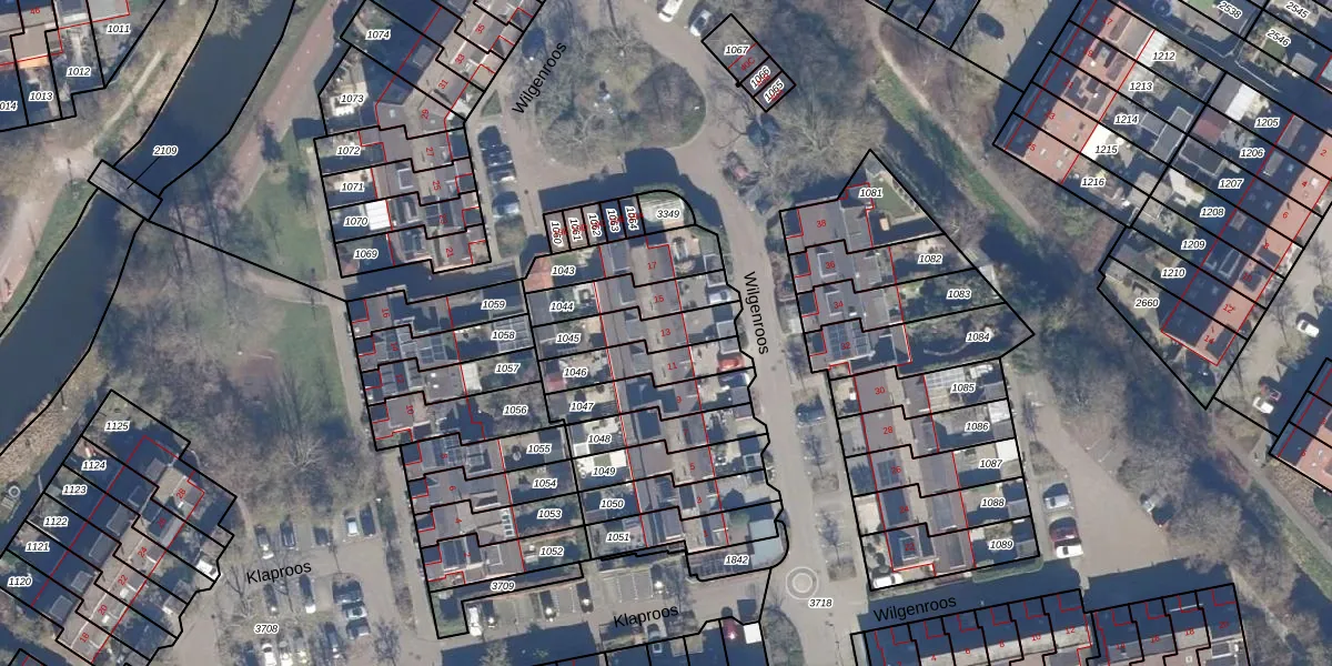 Gebruik de zoekbalk of klik op een perceel voor informatie over de adressen binnen dit perceel.