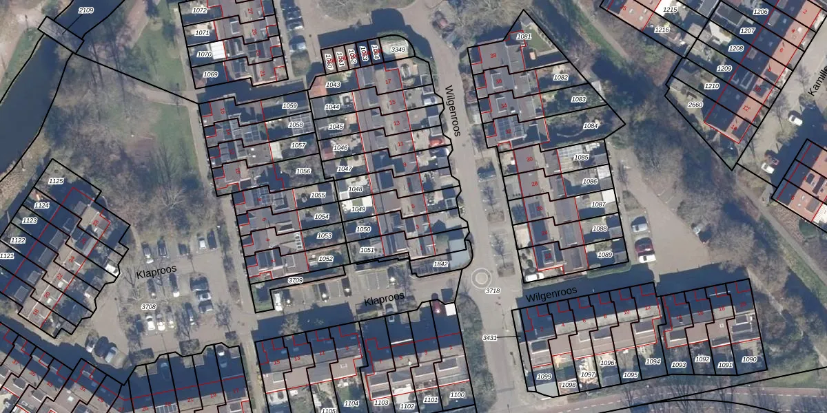 Gebruik de zoekbalk of klik op een perceel voor informatie over de adressen binnen dit perceel.