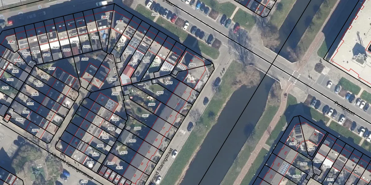 Het perceel waarop Winand Staringstraat 77 staat heeft een oppervlakte van 173 m². Dit is een middelgroot perceel. De perceeloppervlakte wordt geregistreerd door het Kadaster. Gedetailleerde informatie over de maten van dit perceel kunt u vinden in het rapport Kadastrale kaart met maatvoering van Winand Staringstraat 77.