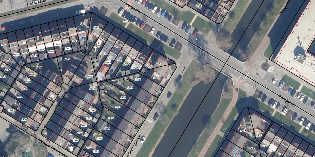Het perceel waarop Winand Staringstraat 79 staat heeft een oppervlakte van 182 m². Dit is een middelgroot perceel. De perceeloppervlakte wordt geregistreerd door het Kadaster. Gedetailleerde informatie over de maten van dit perceel kunt u vinden in het rapport Kadastrale kaart met maatvoering van Winand Staringstraat 79.