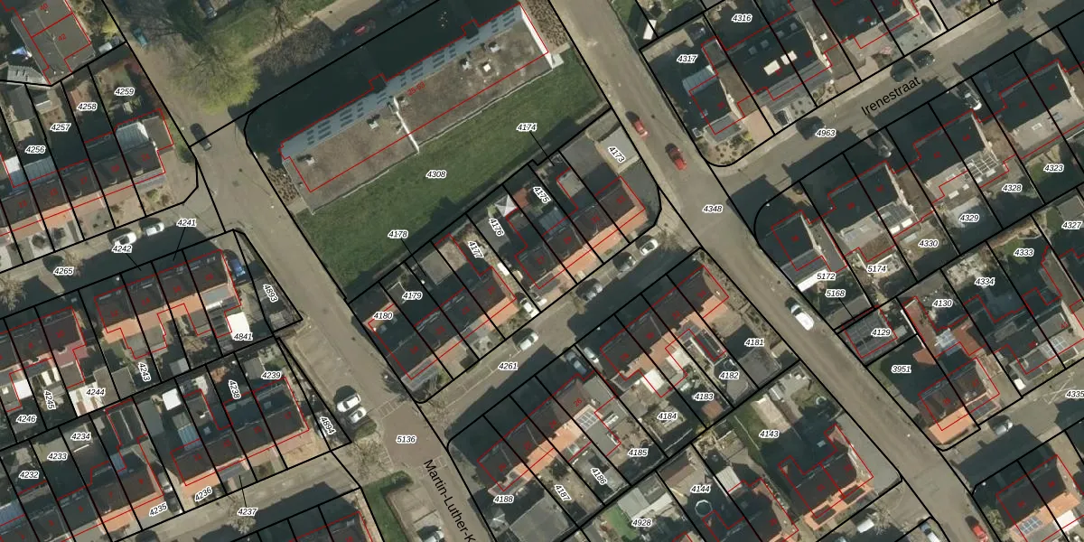 Het perceel waarop Irenestraat 27 staat heeft een oppervlakte van 196 m². Dit is een middelgroot perceel. De perceeloppervlakte wordt geregistreerd door het Kadaster. Gedetailleerde informatie over de maten van dit perceel kunt u vinden in het rapport Kadastrale kaart met maatvoering van Irenestraat 27.
