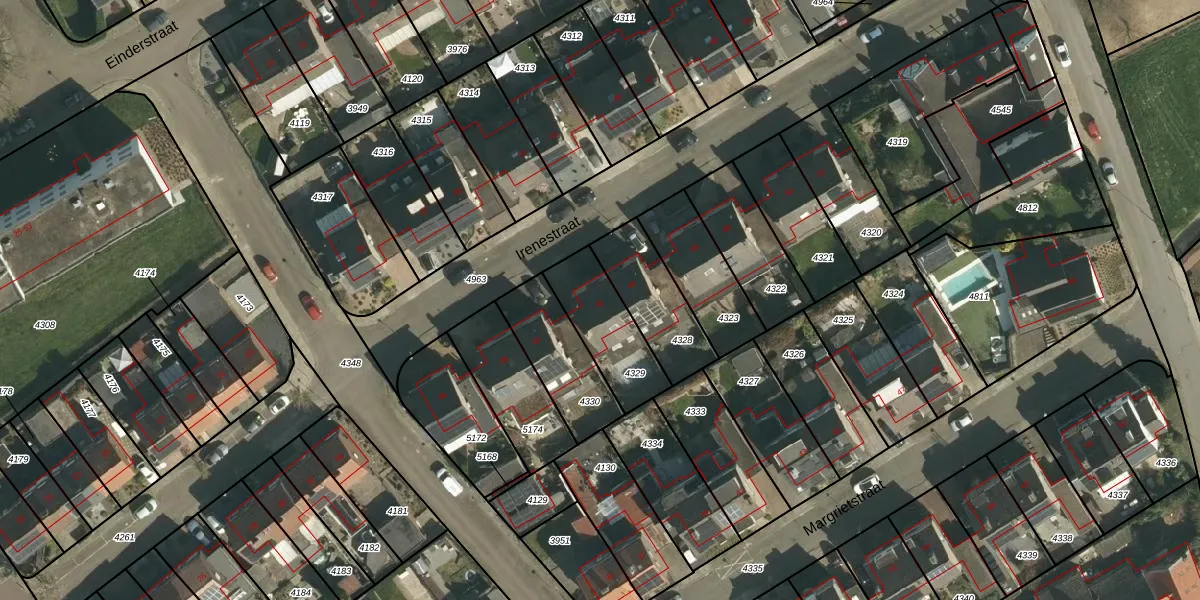 Irenestraat 42 is gelegen op kadastraal perceel SNN00A4329. Deze kadastrale aanduiding is uniek en wordt gebruikt door het Kadaster om eigendomsrechten en andere zakelijke rechten vast te leggen. Het perceel maakt onderdeel uit van de kadastrale gemeente Schinnen.