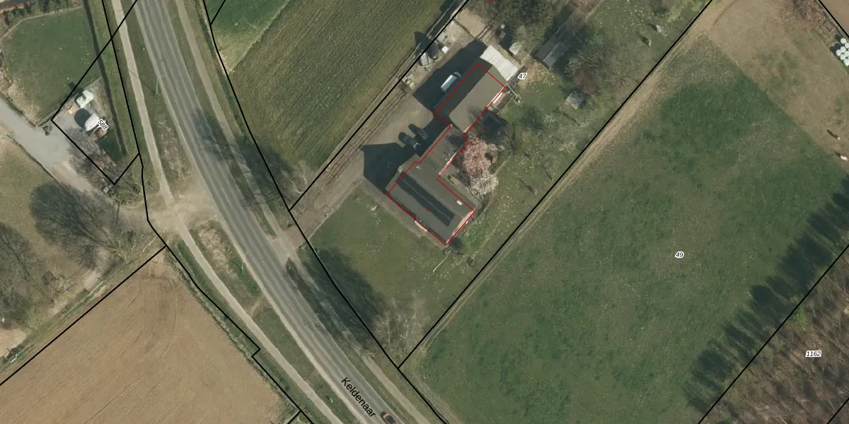 Het perceel waarop Keldenaar 2 staat heeft een oppervlakte van 5420 m². Dit is een zeer groot perceel. De perceeloppervlakte wordt geregistreerd door het Kadaster. Gedetailleerde informatie over de maten van dit perceel kunt u vinden in het rapport Kadastrale kaart met maatvoering van Keldenaar 2.