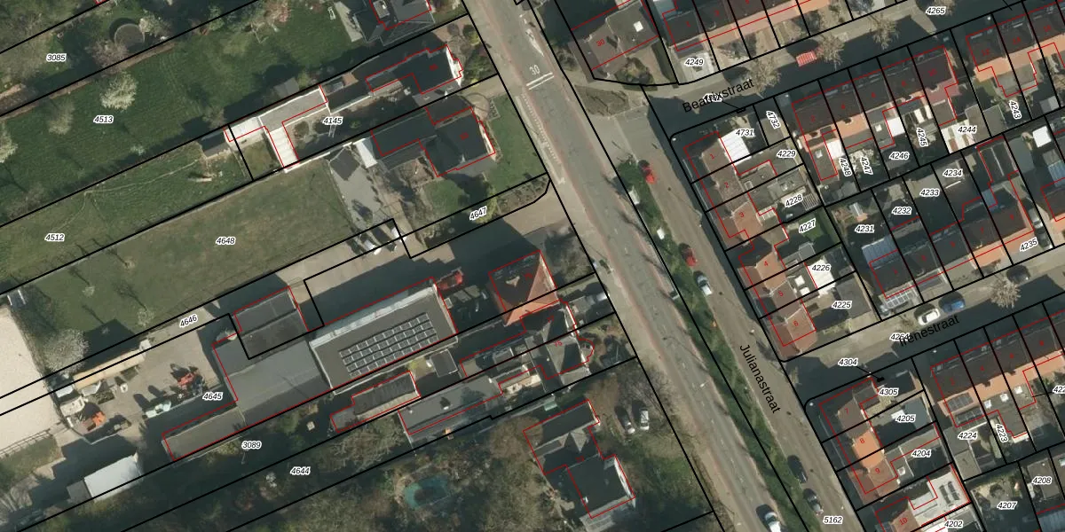 Het adres is gelegen op perceel 4645 in de sectie A en de kadastrale gemeente Schinnen. De kadastrale aanduiding is aldus SNN00-A-4645. Het perceel is 2398 m² groot. Dat is kleiner dan de gemiddelde perceeloppervlakte in Schinnen, dat op 2772,37 m² ligt. Het grootste perceel in de kadastrale gemeente is 22,4 ha. Het kleinste perceel heeft een oppervlakte van 0 m². Dit is het enige adres dat aanwezig is op het perceel. De huidige grenzen van het perceel zijn digitaal in de Basisregistratie Kadaster (BRK) geregistreerd op 23-07-2007.