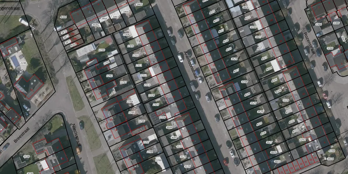 Het perceel waarop Anemoonstraat 21 staat heeft een oppervlakte van 166 m². Dit is een middelgroot perceel. De perceeloppervlakte wordt geregistreerd door het Kadaster. Gedetailleerde informatie over de maten van dit perceel kunt u vinden in het rapport Kadastrale kaart met maatvoering van Anemoonstraat 21.