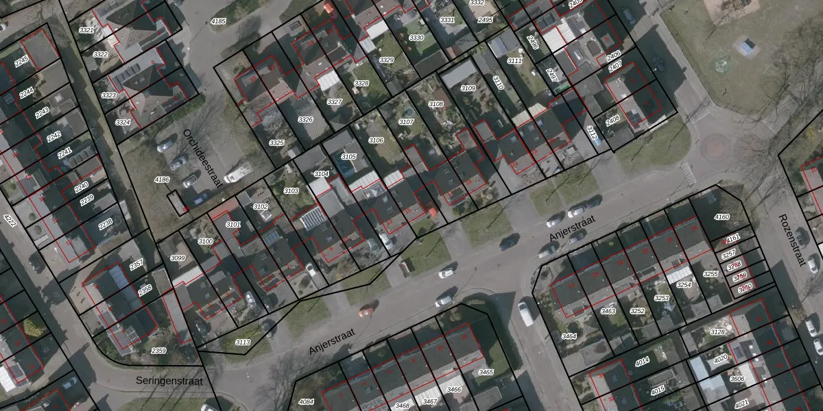 Anjerstraat 15 is gelegen op kadastraal perceel PTE00B3106. Deze kadastrale aanduiding is uniek en wordt gebruikt door het Kadaster om eigendomsrechten en andere zakelijke rechten vast te leggen. Het perceel maakt onderdeel uit van de kadastrale gemeente Putte.