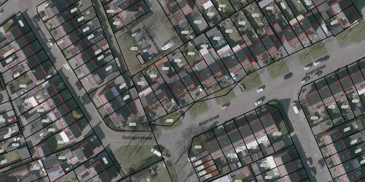 Gebruik de zoekbalk of klik op een perceel voor informatie over de adressen binnen dit perceel.