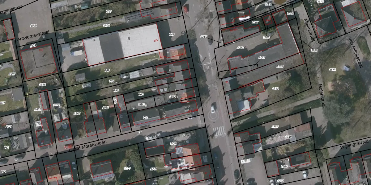 Het perceel waarop Antwerpsestraat 105 staat heeft een oppervlakte van 145 m². Dit is een middelgroot perceel. De perceeloppervlakte wordt geregistreerd door het Kadaster. Gedetailleerde informatie over de maten van dit perceel kunt u vinden in het rapport Kadastrale kaart met maatvoering van Antwerpsestraat 105.