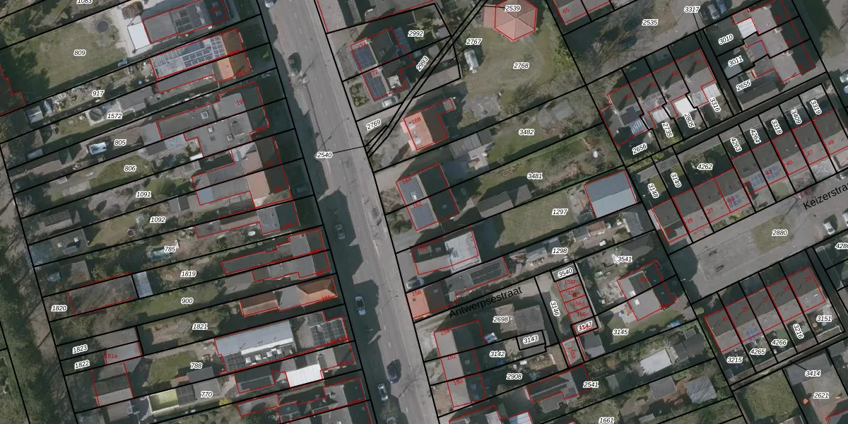 Het perceel waarop Antwerpsestraat 162 staat heeft een oppervlakte van 592 m². Dit is een groot perceel. De perceeloppervlakte wordt geregistreerd door het Kadaster. Gedetailleerde informatie over de maten van dit perceel kunt u vinden in het rapport Kadastrale kaart met maatvoering van Antwerpsestraat 162.