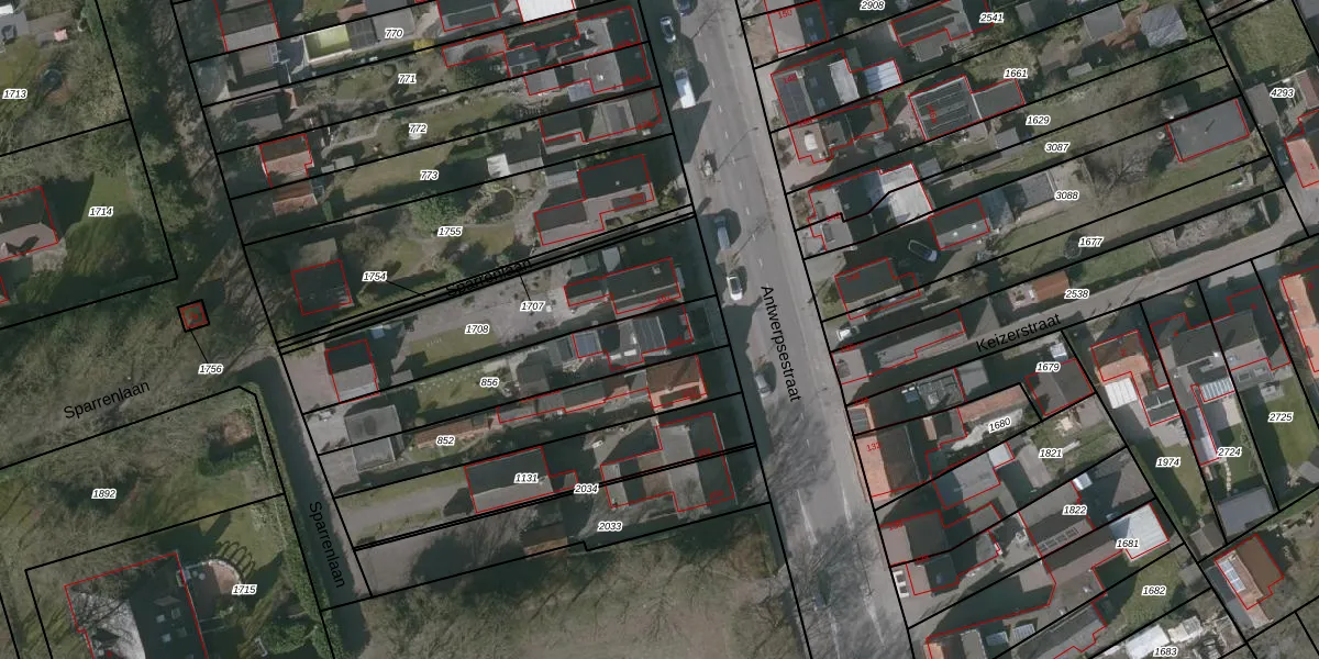 Het perceel waarop Antwerpsestraat 165 staat heeft een oppervlakte van 480 m². Dit is een groot perceel. De perceeloppervlakte wordt geregistreerd door het Kadaster. Gedetailleerde informatie over de maten van dit perceel kunt u vinden in het rapport Kadastrale kaart met maatvoering van Antwerpsestraat 165.