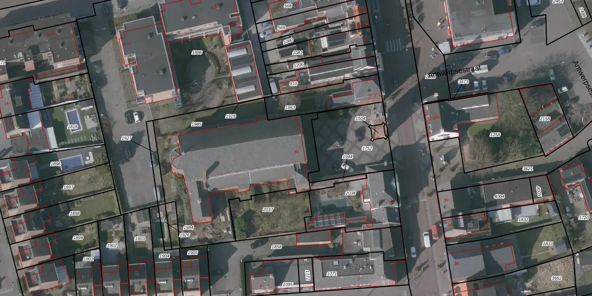 Het perceel waarop Antwerpsestraat 35 staat heeft een oppervlakte van 1792 m². Dit is een zeer groot perceel. De perceeloppervlakte wordt geregistreerd door het Kadaster. Gedetailleerde informatie over de maten van dit perceel kunt u vinden in het rapport Kadastrale kaart met maatvoering van Antwerpsestraat 35.