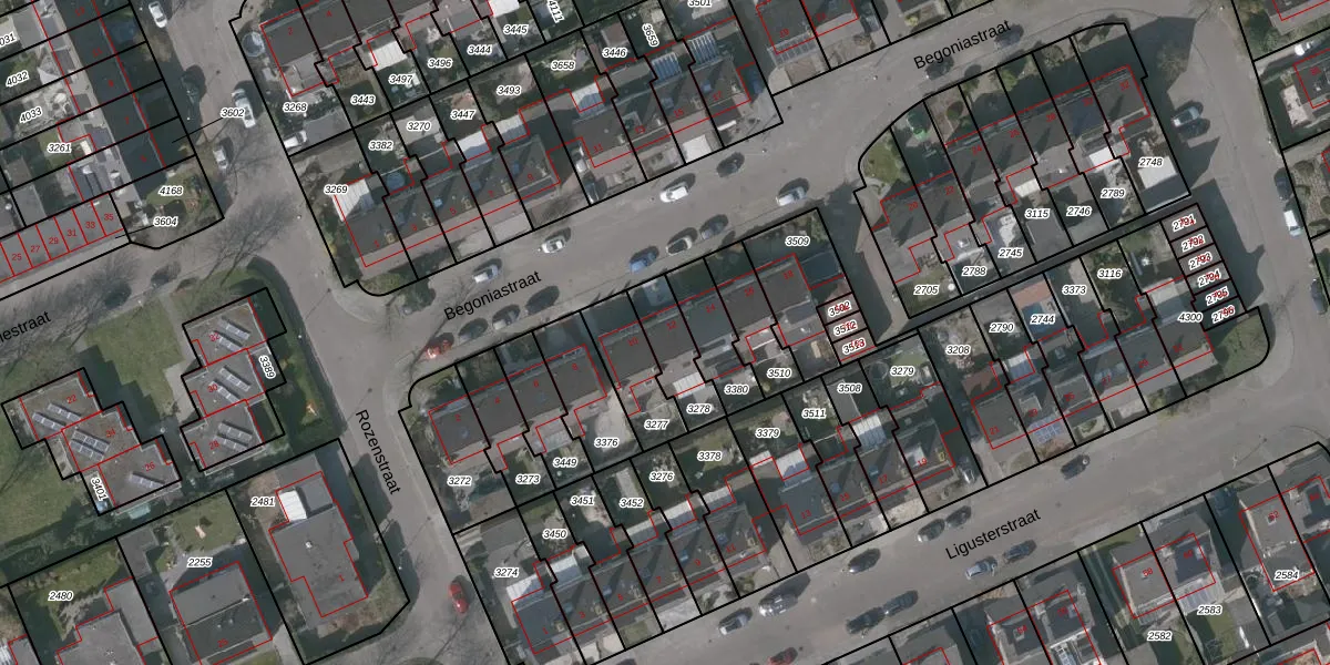 Gebruik de zoekbalk of klik op een perceel voor informatie over de adressen binnen dit perceel.