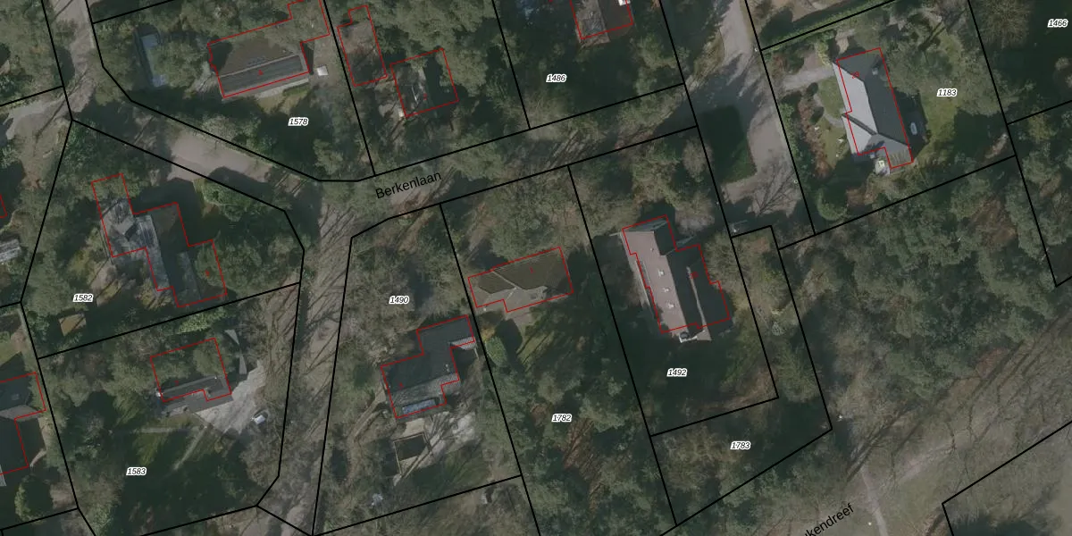 Het perceel waarop Berkenlaan 1 staat heeft een oppervlakte van 1840 m². Dit is een zeer groot perceel. De perceeloppervlakte wordt geregistreerd door het Kadaster. Gedetailleerde informatie over de maten van dit perceel kunt u vinden in het rapport Kadastrale kaart met maatvoering van Berkenlaan 1.