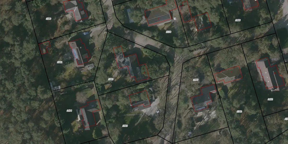 Het perceel waarop Berkenlaan 9 staat heeft een oppervlakte van 1400 m². Dit is een zeer groot perceel. De perceeloppervlakte wordt geregistreerd door het Kadaster. Gedetailleerde informatie over de maten van dit perceel kunt u vinden in het rapport Kadastrale kaart met maatvoering van Berkenlaan 9.