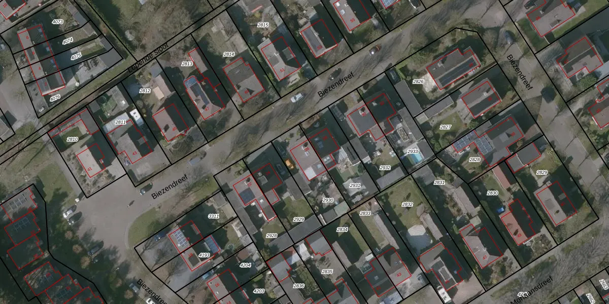 Het perceel waarop Biezendreef 26 staat heeft een oppervlakte van 363 m². Dit is een groot perceel. De perceeloppervlakte wordt geregistreerd door het Kadaster. Gedetailleerde informatie over de maten van dit perceel kunt u vinden in het rapport Kadastrale kaart met maatvoering van Biezendreef 26.