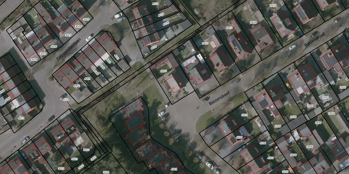 Het perceel waarop Biezendreef 41 staat heeft een oppervlakte van 396 m². Dit is een groot perceel. De perceeloppervlakte wordt geregistreerd door het Kadaster. Gedetailleerde informatie over de maten van dit perceel kunt u vinden in het rapport Kadastrale kaart met maatvoering van Biezendreef 41.