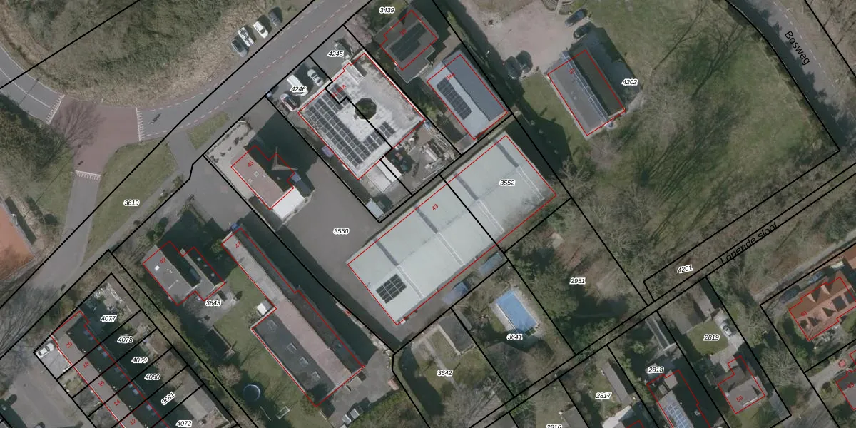 Bosweg 43 is gelegen op kadastraal perceel PTE00B3550. Deze kadastrale aanduiding is uniek en wordt gebruikt door het Kadaster om eigendomsrechten en andere zakelijke rechten vast te leggen. Het perceel maakt onderdeel uit van de kadastrale gemeente Putte.
