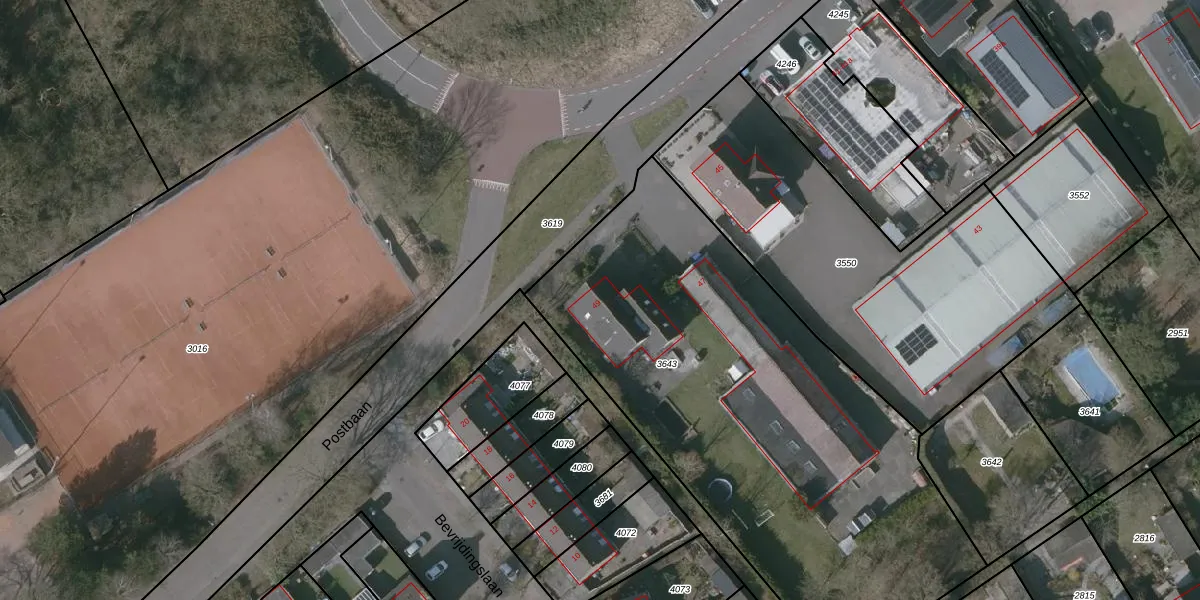 Het perceel waarop Bosweg 49 staat heeft een oppervlakte van 2743 m². Dit is een zeer groot perceel. De perceeloppervlakte wordt geregistreerd door het Kadaster. Gedetailleerde informatie over de maten van dit perceel kunt u vinden in het rapport Kadastrale kaart met maatvoering van Bosweg 49.