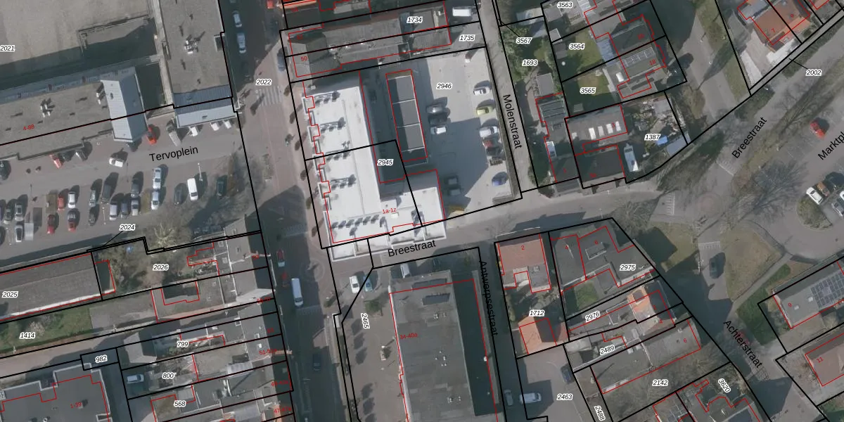 Breestraat 1-g is gelegen op kadastraal perceel PTE00B2946. Deze kadastrale aanduiding is uniek en wordt gebruikt door het Kadaster om eigendomsrechten en andere zakelijke rechten vast te leggen. Het perceel maakt onderdeel uit van de kadastrale gemeente Putte.