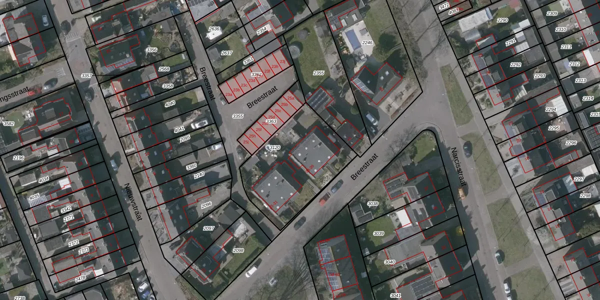 Het perceel waarop Breestraat 35 staat heeft een oppervlakte van 855 m². Dit is een groot perceel. De perceeloppervlakte wordt geregistreerd door het Kadaster. Gedetailleerde informatie over de maten van dit perceel kunt u vinden in het rapport Kadastrale kaart met maatvoering van Breestraat 35.