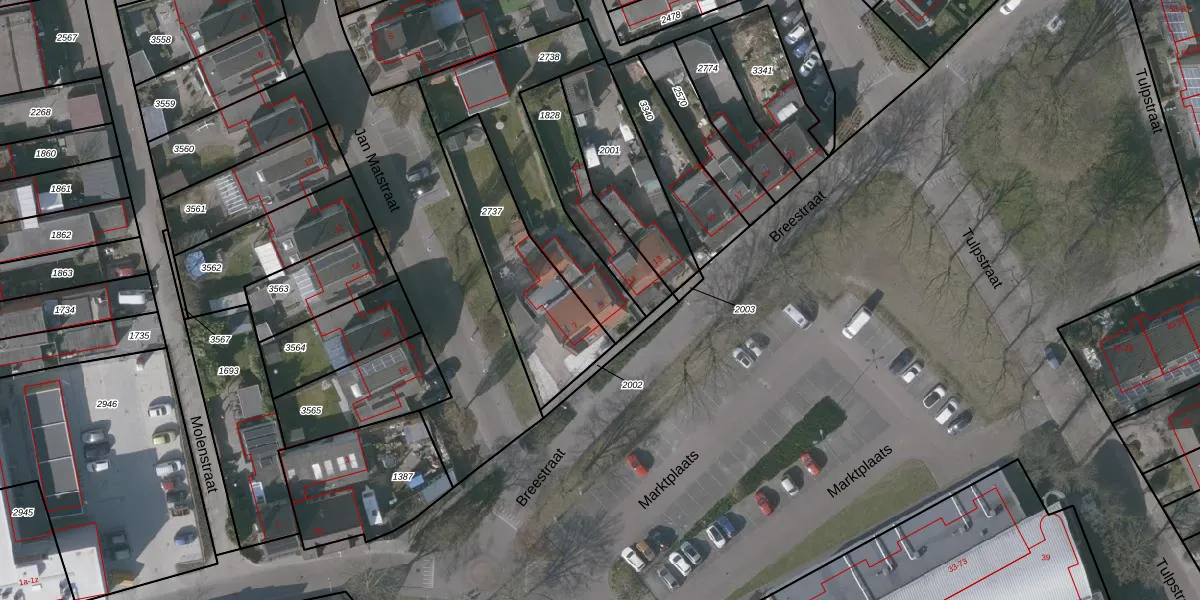 Het perceel waarop Breestraat 9 staat heeft een oppervlakte van 570 m². Dit is een groot perceel. De perceeloppervlakte wordt geregistreerd door het Kadaster. Gedetailleerde informatie over de maten van dit perceel kunt u vinden in het rapport Kadastrale kaart met maatvoering van Breestraat 9.