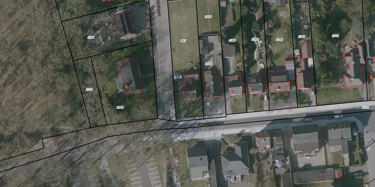 Het perceel waarop Canadalaan 27 staat heeft een oppervlakte van 970 m². Dit is een groot perceel. De perceeloppervlakte wordt geregistreerd door het Kadaster. Gedetailleerde informatie over de maten van dit perceel kunt u vinden in het rapport Kadastrale kaart met maatvoering van Canadalaan 27.