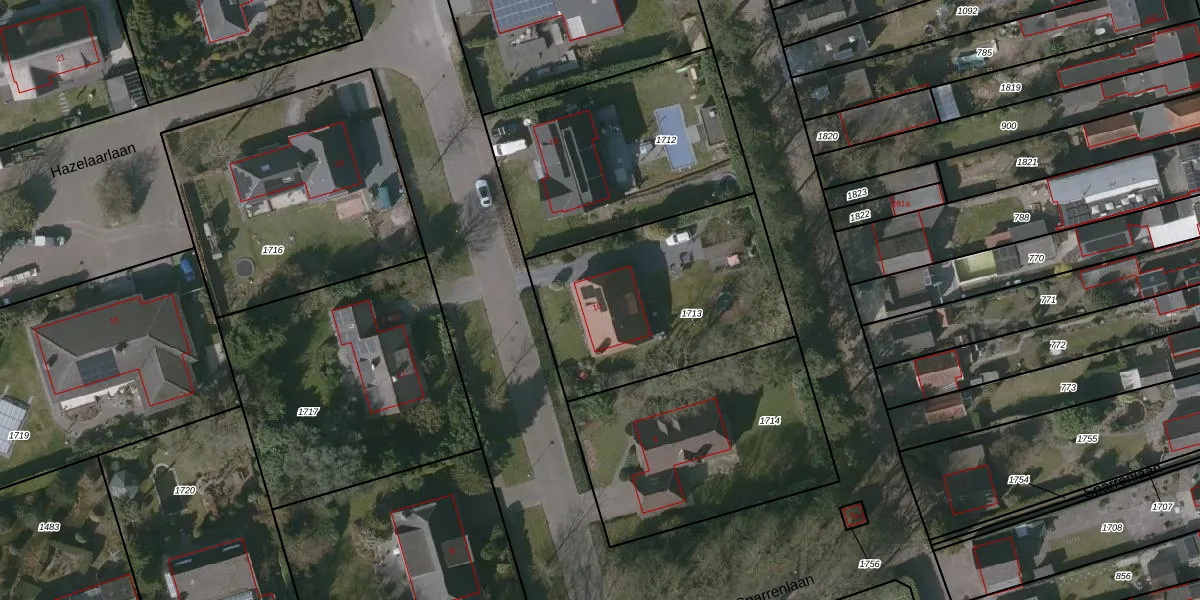 Hazelaarlaan 10 is gelegen op kadastraal perceel PTE00C1713. Deze kadastrale aanduiding is uniek en wordt gebruikt door het Kadaster om eigendomsrechten en andere zakelijke rechten vast te leggen. Het perceel maakt onderdeel uit van de kadastrale gemeente Putte.
