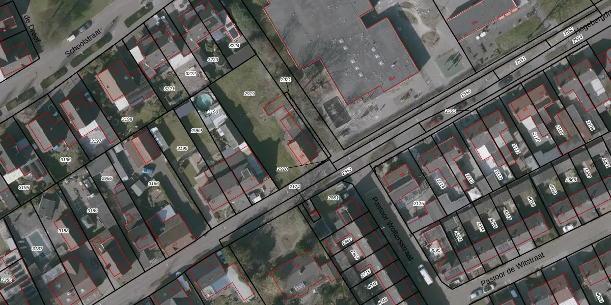 Hogebergdreef 55 is gelegen op kadastraal perceel PTE00B2919. Deze kadastrale aanduiding is uniek en wordt gebruikt door het Kadaster om eigendomsrechten en andere zakelijke rechten vast te leggen. Het perceel maakt onderdeel uit van de kadastrale gemeente Putte.