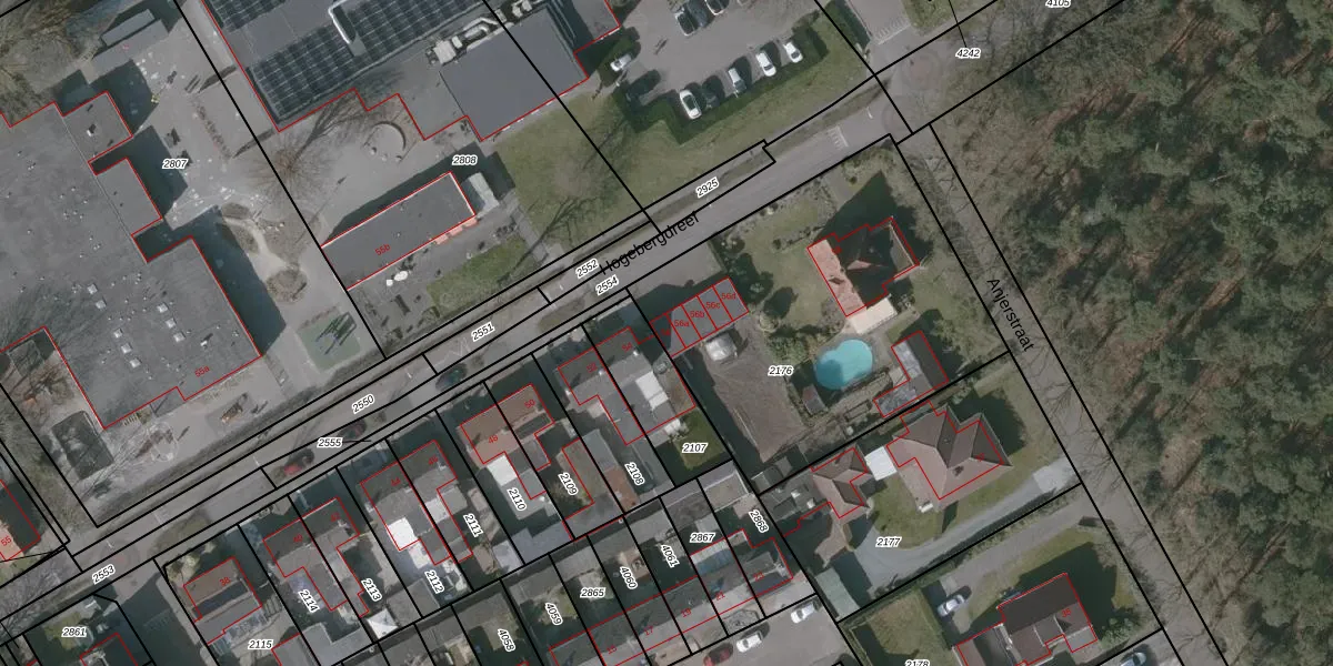 Het perceel waarop Hogebergdreef 56 staat heeft een oppervlakte van 1652 m². Dit is een zeer groot perceel. De perceeloppervlakte wordt geregistreerd door het Kadaster. Gedetailleerde informatie over de maten van dit perceel kunt u vinden in het rapport Kadastrale kaart met maatvoering van Hogebergdreef 56.