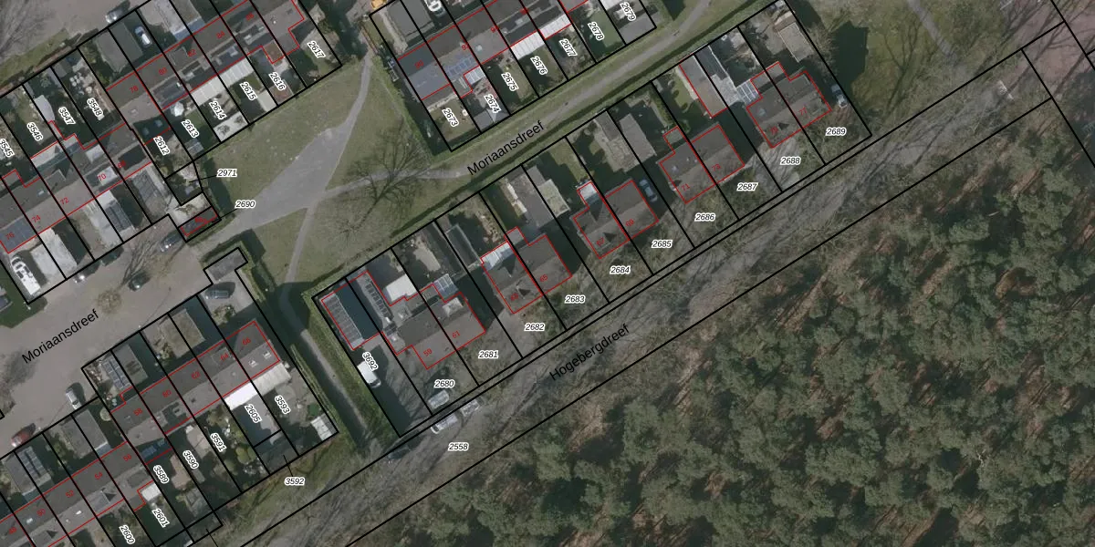 Het perceel waarop Hogebergdreef 65 staat heeft een oppervlakte van 281 m². Dit is een middelgroot perceel. De perceeloppervlakte wordt geregistreerd door het Kadaster. Gedetailleerde informatie over de maten van dit perceel kunt u vinden in het rapport Kadastrale kaart met maatvoering van Hogebergdreef 65.