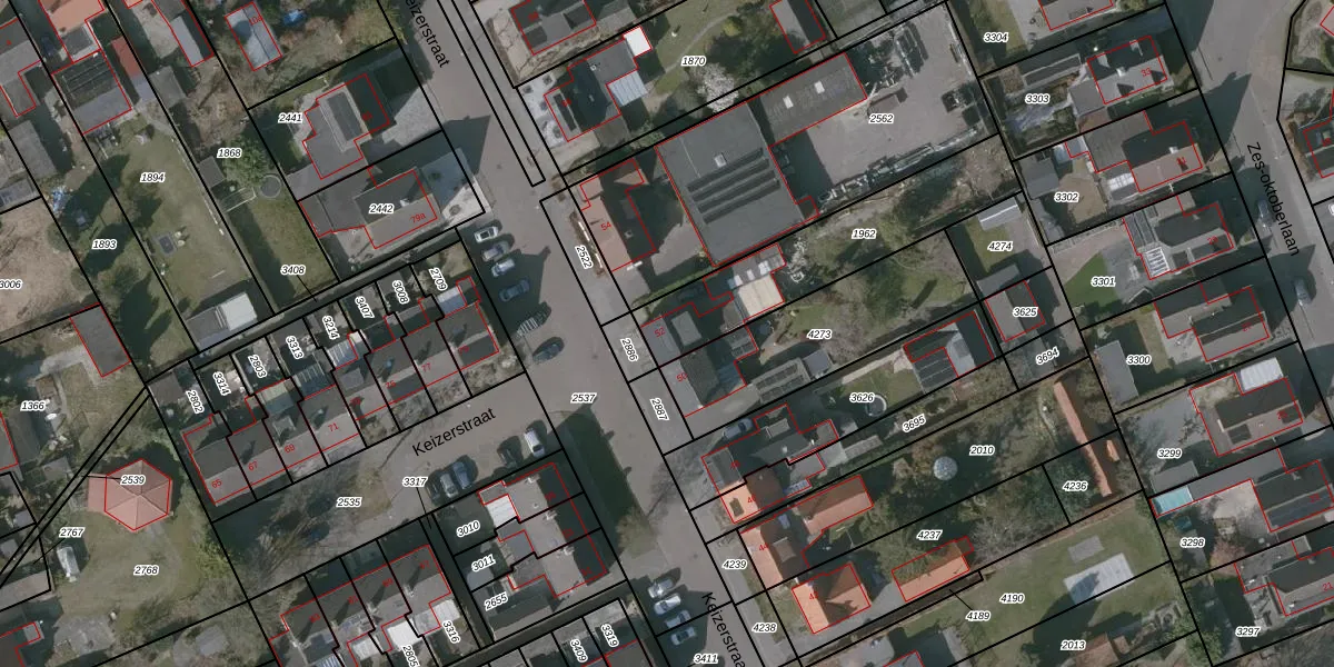 Gebruik de zoekbalk of klik op een perceel voor informatie over de adressen binnen dit perceel.