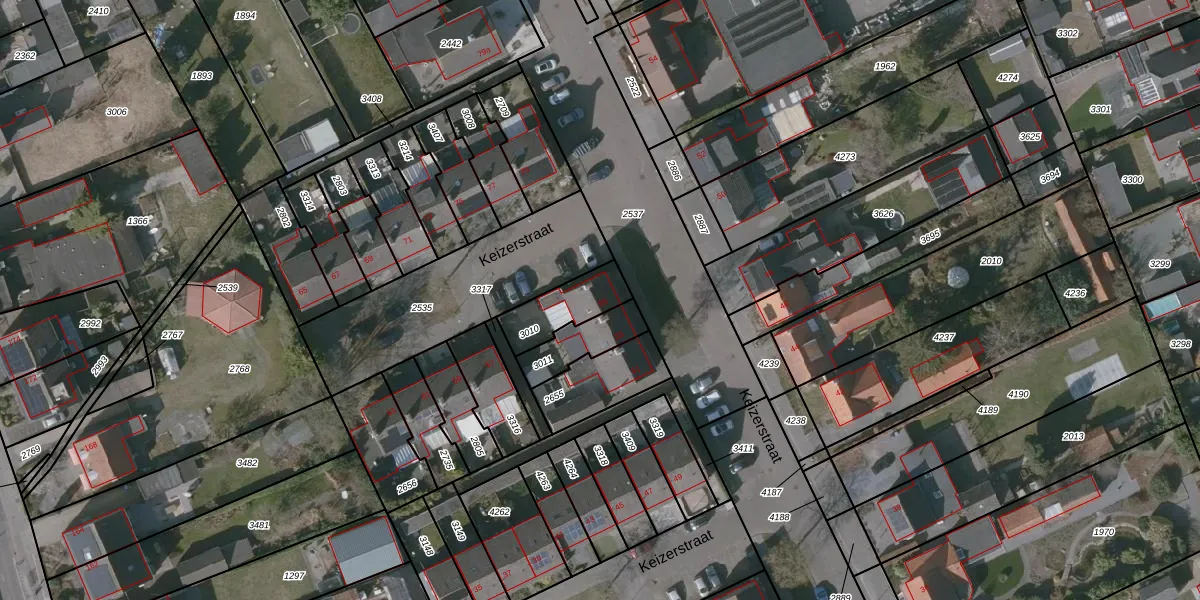 Keizerstraat 55 is gelegen op kadastraal perceel PTE00B3010. Deze kadastrale aanduiding is uniek en wordt gebruikt door het Kadaster om eigendomsrechten en andere zakelijke rechten vast te leggen. Het perceel maakt onderdeel uit van de kadastrale gemeente Putte.