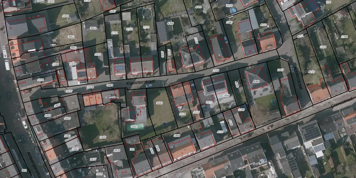 Klavetterstraat 12 is gelegen op kadastraal perceel PTE00B1514. Deze kadastrale aanduiding is uniek en wordt gebruikt door het Kadaster om eigendomsrechten en andere zakelijke rechten vast te leggen. Het perceel maakt onderdeel uit van de kadastrale gemeente Putte.