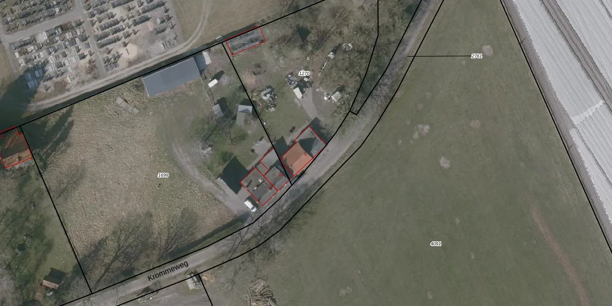Krommeweg 5 is gelegen op kadastraal perceel PTE00B1270. Deze kadastrale aanduiding is uniek en wordt gebruikt door het Kadaster om eigendomsrechten en andere zakelijke rechten vast te leggen. Het perceel maakt onderdeel uit van de kadastrale gemeente Putte.