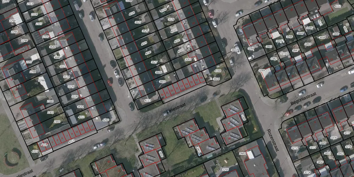 Het perceel waarop Leliestraat 25 staat heeft een oppervlakte van 228 m². Dit is een middelgroot perceel. De perceeloppervlakte wordt geregistreerd door het Kadaster. Gedetailleerde informatie over de maten van dit perceel kunt u vinden in het rapport Kadastrale kaart met maatvoering van Leliestraat 25.