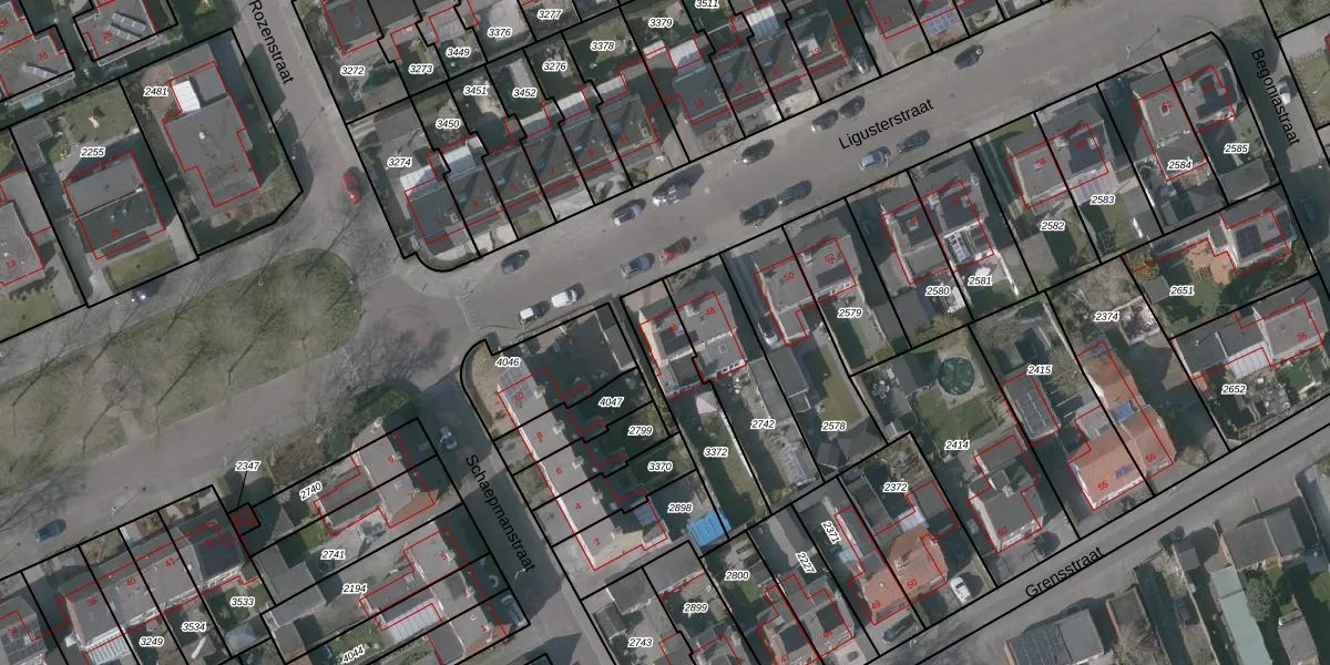 Gebruik de zoekbalk of klik op een perceel voor informatie over de adressen binnen dit perceel.