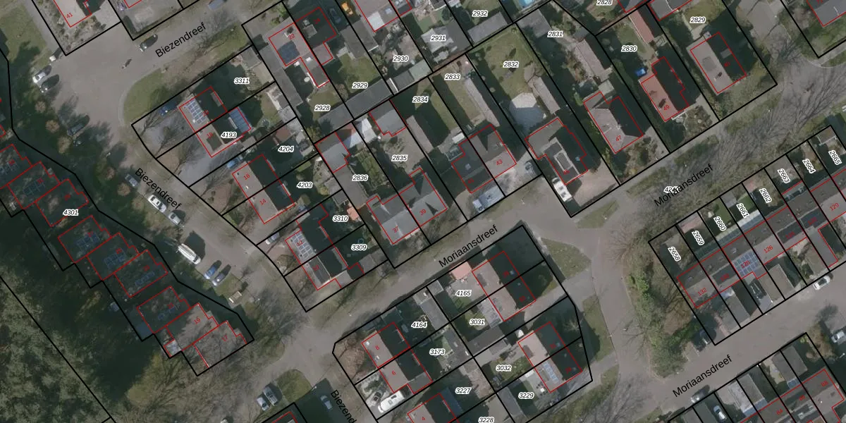 Het perceel waarop Moriaansdreef 39 staat heeft een oppervlakte van 359 m². Dit is een groot perceel. De perceeloppervlakte wordt geregistreerd door het Kadaster. Gedetailleerde informatie over de maten van dit perceel kunt u vinden in het rapport Kadastrale kaart met maatvoering van Moriaansdreef 39.