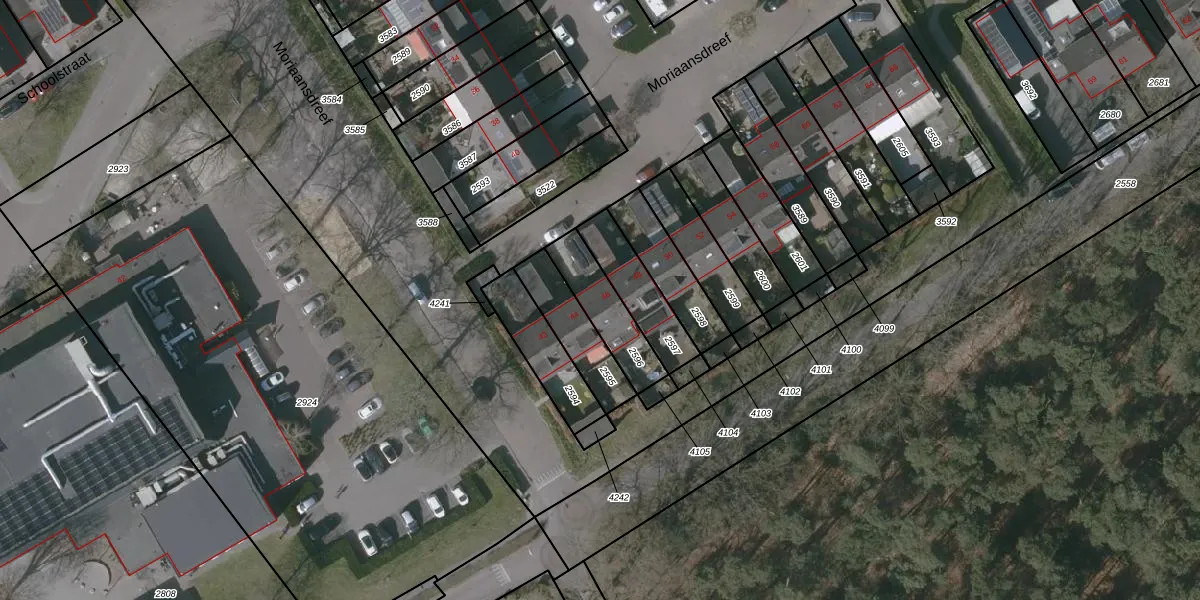 Moriaansdreef 46 is gelegen op kadastraal perceel PTE00B2596. Deze kadastrale aanduiding is uniek en wordt gebruikt door het Kadaster om eigendomsrechten en andere zakelijke rechten vast te leggen. Het perceel maakt onderdeel uit van de kadastrale gemeente Putte.