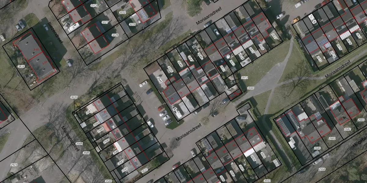 Moriaansdreef 74 is gelegen op kadastraal perceel PTE00B3545. Deze kadastrale aanduiding is uniek en wordt gebruikt door het Kadaster om eigendomsrechten en andere zakelijke rechten vast te leggen. Het perceel maakt onderdeel uit van de kadastrale gemeente Putte.