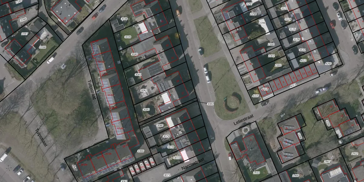 Gebruik de zoekbalk of klik op een perceel voor informatie over de adressen binnen dit perceel.