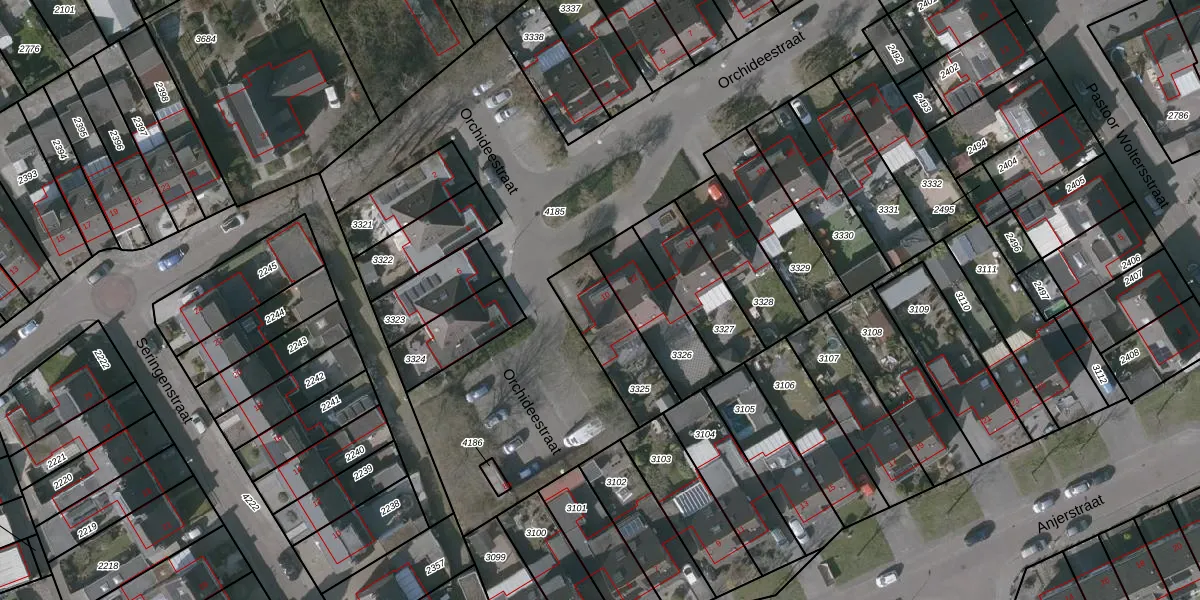 Orchideestraat 10 is gelegen op kadastraal perceel PTE00B3325. Deze kadastrale aanduiding is uniek en wordt gebruikt door het Kadaster om eigendomsrechten en andere zakelijke rechten vast te leggen. Het perceel maakt onderdeel uit van de kadastrale gemeente Putte.