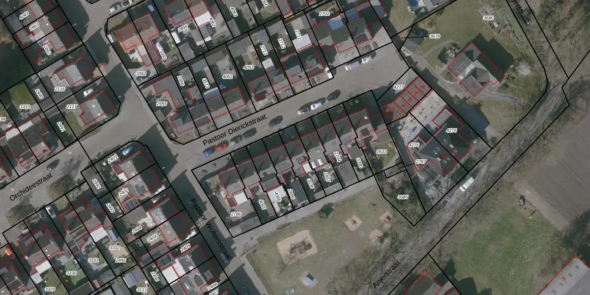 Gebruik de zoekbalk of klik op een perceel voor informatie over de adressen binnen dit perceel.